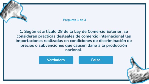 3. Los subsidios o subvenciones se consideran prácticas desleales cuando un gobierno otorga beneficios a los exportadores, permitiéndoles ofrecer precios artificialmente bajos en el mercado internacional.