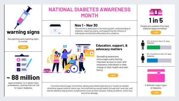 This month is dedicated to increasing public understanding of diabetes, reducing stigma, and supporting the millions of individuals and families affected by the condition.