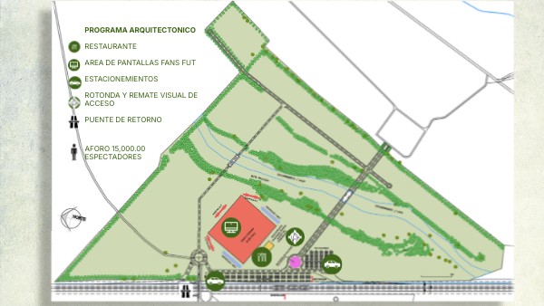 Programa Arquitectonico RESTAURANTE AREA DE PANTALLAS FANS FUT ESTACIONEMIENTOS ROTONDA Y REMATE VISUAL DE ACCESO PUENTE DE RETORNO