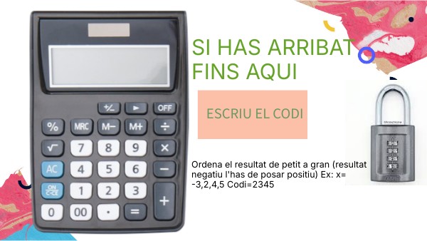 Ordena el resultat de petit a gran (resultat negatiu l'has de posar positiu) Ex: x= -3,2,4,5 Codi=2345