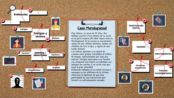 Los diferentes grupos “Toro” y “Tigre” (Posibles redes criminales organizadas)Rastreo financiero y logístico.Análisis de patrones criminales. (investigar antecedentes de casos similares)Investigación sobre contactos de agencias ciberneticasPerfil psicológico y social de la víctimaCoordinación con la Gang unit y cibercrimen