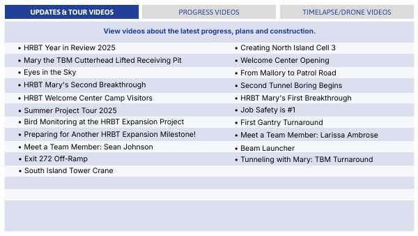 View videos about the latest progress, plans and construction.