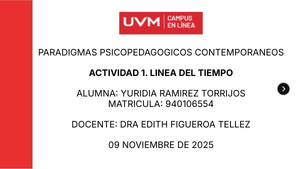 PARADIGMAS PSICOPEDAGOGICOS CONTEMPORANEOS ACTIVIDAD 1. LINEA DEL TIEMPO ALUMNA: YURIDIA RAMIREZ TORRIJOS MATRICULA: 940106554 DOCENTE: DRA EDITH FIGUEROA TELLEZ 09 NOVIEMBRE DE 2025