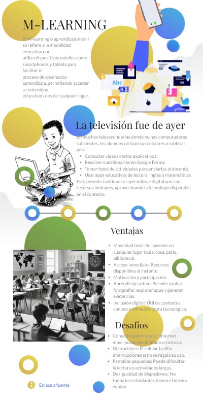 El M-learning o aprendizaje móvil se refiere a la modalidad educativa que utiliza dispositivos móviles como smartphones y tablets para facilitar el proceso de enseñanza-aprendizaje, permitiendo acceder a contenidos educativos des de cualquier lugar.