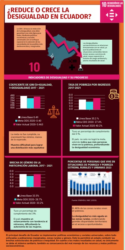 La ODS 10 busca la reducción de la desigualdad, esta debe garantizar una vida digna para todos. Mediante políticas económicas y sociales universales con un enfoque especial en la atención de las necesidades de los pueblos más desfavorecidas y marginadas.