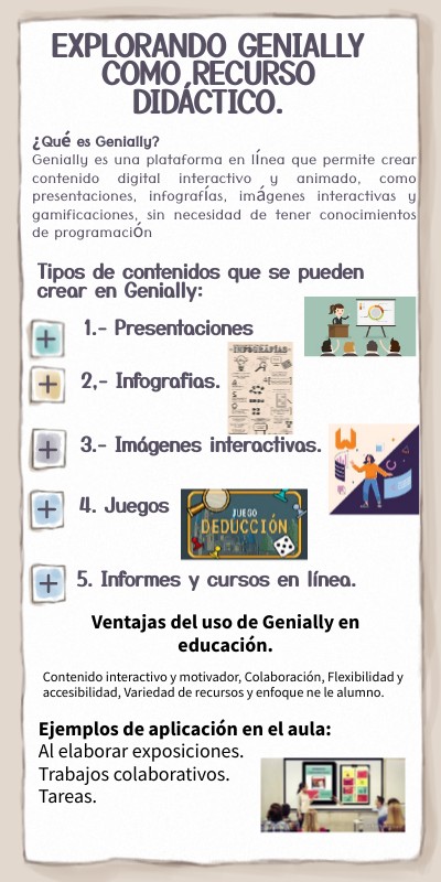 ¿Qué es Genially?Genially es una plataforma en línea que permite crear contenido digital interactivo y animado, como presentaciones, infografías, imágenes interactivas y gamificaciones, sin necesidad de tener conocimientos de programación