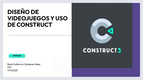Definición:Construct es una herramienta para crear videojuegos sin necesidad de programar con código. Utiliza un sistema visual de eventos y comportamientos que facilita el desarrollo.
