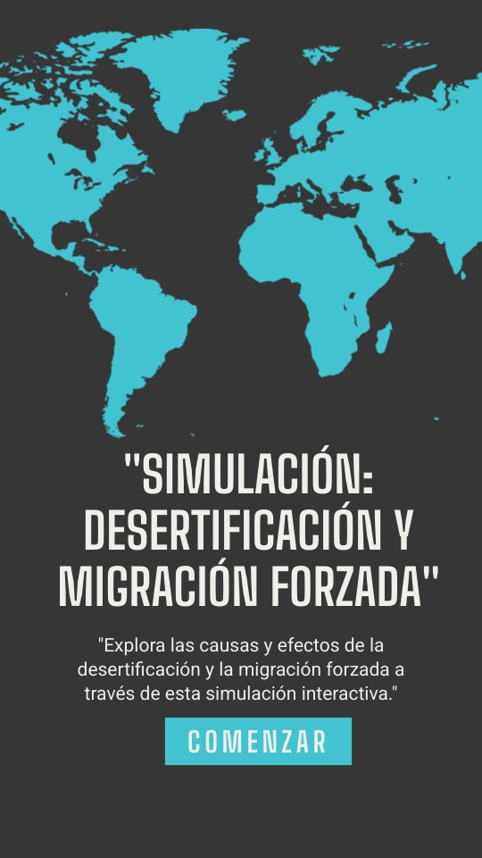 "Explora las causas y efectos de la desertificación y la migración forzada a través de esta simulación interactiva."