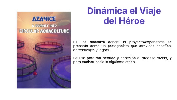 Es una dinámica donde un proyecto/experiencia se presenta como un protagonista que atraviesa desafíos, aprendizajes y logros. Se usa para dar sentido y cohesión al proceso vivido, y para motivar hacia la siguiente etapa.