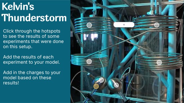 Click through the hotspots to see the results of some experiments that were done on this setup. Add the results of each experiment to your model.Add in the charges to your model based on these results!