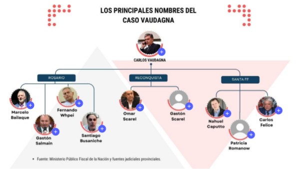 Está a cargo del Juzgado federal N° 1 de Rosario. En los chats de Vaudagna, se encontraron al menos 48 mensajes con el contacto “Gastón Salmain”.