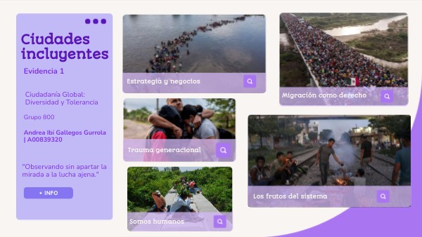 En este collage fotográfico se presenta el dolor y la lucha de migrantes que han tenido que abandonar sus hogares por diversas razones, pero con un mismo propósito: buscar mejorar sus vidas. Esto es a través de diversas formas.