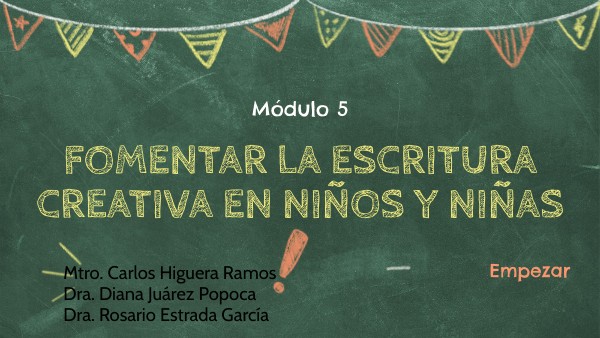 5.1 Técnicas de escritura creativa para la infancia. 5.2 Creación de personajes, escenarios y tramas. 5.3 Estrategias para desarrollar habilidades de expresión escrita en niñas y niños. 5.4 Escritura creativa infantil. 5.5 Secuencias didácticas para el aula.