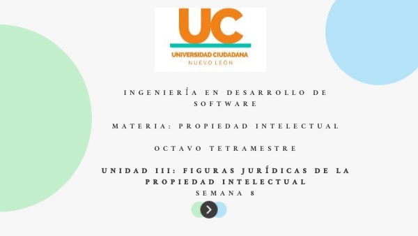 Ingeniería en Desarrollo de Software Materia: Propiedad Intelectual Octavo tetramestre Unidad III: Figuras jurídicas de la propiedad intelectual Semana 8