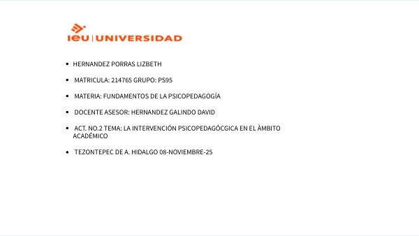 - ACT. NO.2 TEMA: LA INTERVENCIÓN PSICOPEDAGÓCGICA EN EL ÀMBITO
