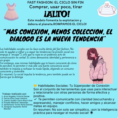 Las habilidades sociales son la clave oculta detrás del fast fashion. No solo te ayudan a influir y a seguir las tendencias (la presión social nos empuja a "encajar"), sino que tu ropa es un poderoso acto de comunicación no verbal. Es cómo demuestras identidad y pertenencia a un grupo. Sin embargo, esas mismas habilidades que te hacen consciente de cómo te perciben, te permiten ir más allá: una fuerte consciencia social también te impulsa a rechazar la moda rápida, eligiendo un consumo consciente y sostenible. En resumen: Lo social impulsa la tendencia, pero también puede ser la fuerza que la detenga.