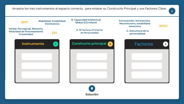 Arrastra los tres instrumentos al espacio correcto, para enlazar su Constructo Principal y sus Factores Clave.