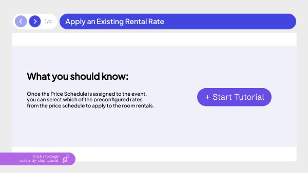 Once the Price Schedule is assigned to the event, you can select which of the preconfigured rates from the price schedule to apply to the room rentals.