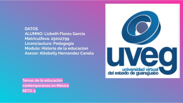 DATOSALUMNO: Lizbeth Flores Garcia Matriculfeva: 25012799 Licenciautura: Pedagogía Modulo: Aproximación a escenarios educativos Asesor: Consuelo Natividad de Leon Hernandez