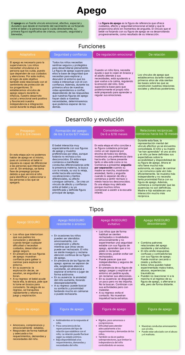 El apego es un fuerte vínculo emocional, afectivo, especial y duradero que desde el momento del nacimiento se va forjando entre el bebé y la persona que lo cuida directamente, su primera figura significativa de crianza, consuelo, seguridad y bienestar,