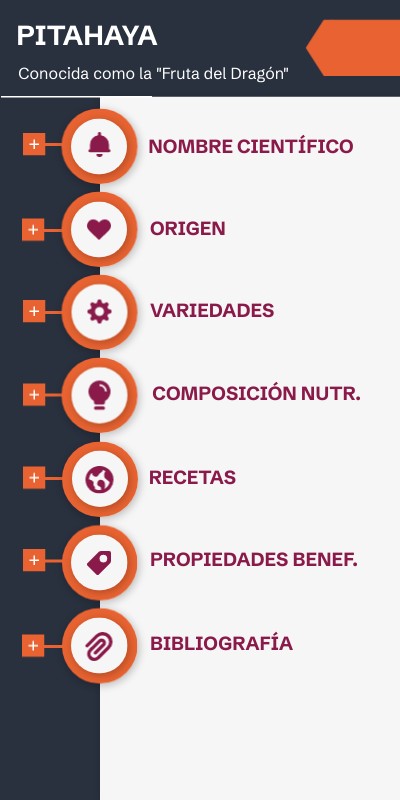 La pitahaya (Hylocereus spp.) es una fruta de bajo contenido calórico pero rica en nutrientes esenciales. Por cada 100 g aporta vitaminas como C y del complejo B, minerales como potasio, calcio, magnesio, fósforo y hierro, además de fibra dietética y compuestos bioactivos como antioxidantes y pigmentos betalainas. Esta combinación nutricional la convierte en un alimento funcional ideal para la dieta diaria y la promoción de la salud.