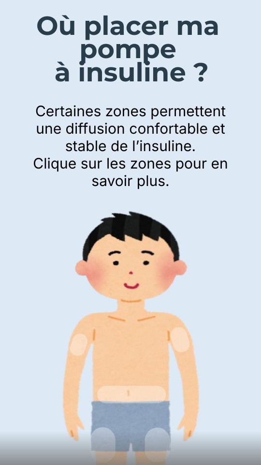Certaines zones permettent une diffusion confortable et stable de l’insuline. Clique sur les zones pour en savoir plus.