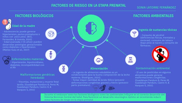 Durante el embarazo tanto los factores biológicos como los ambientales influyen en el correcto desarrollo del Sistema Nervioso Central del bebé. Para favorecer un desarrollo neurologíco óptimo se recomienda reducir estos factores de riesgo en la etapa prenatal