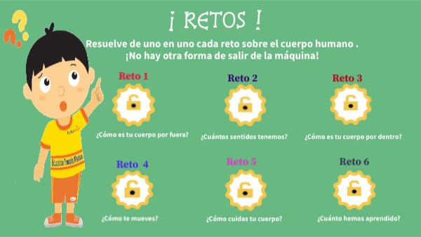 Resuelve de uno en uno cada reto sobre el cuerpo humano . ¡No hay otra forma de salir de la máquina!