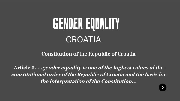 Constitution of the Republic of Croatia Article 3. …gender equality is one of the highest values of the constitutional order of the Republic of Croatia and the basis for the interpretation of the Constitution...