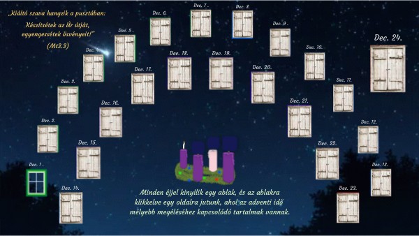 Minden éjjel kinyílik egy ablak, és az ablakra klikkelve egy oldalra jutunk, ahol az adventi idő mélyebb megéléséhez kapcsolódó tartalmak vannak.