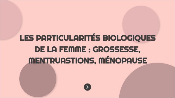 Les particularités biologiques de la femme : grossesse, mentruastions, ménopause