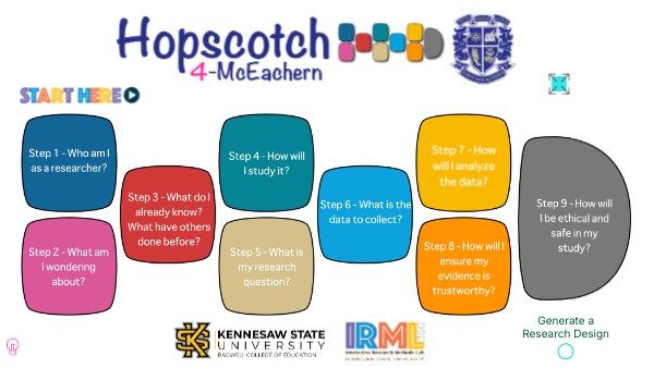 DirectionsTo generate your research design using Hopscotch 4-AP Research, please complete the form located on the left side of this page. To respond to the questions under each of the nine steps outlined in Hopscotch, explore the interactive resources available by clicking on the steps above.Once you have completed the form, you will receive an email with your research design in PDF format. Note: If you are using the magnetic version, you can also use this Web App to generate your design.