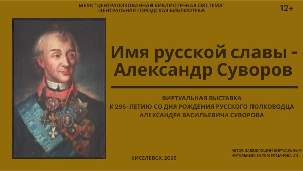 виртуальная выставка к 295-летию со дня рождения русского полководца Александра Васильевича Суворова