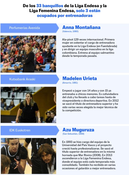 De los 33 banquillos de la Liga Endesa y la Liga Femenina Endesa, solo 3 están ocupados por entrenadoras