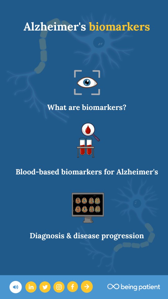 In the case of Alzheimer's disease, biomarkers might be present in the blood, the eye, or even detectable in someone's gait or speech patterns.