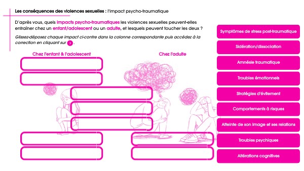 D’après vous, quels impacts psycho-traumatiques les violences sexuelles peuvent-elles entraîner chez un enfant/adolescent ou un adulte, et lesquels peuvent toucher les deux ?