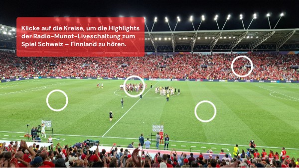 Klicke auf die Kreise, um die Highlights der Radio-Munot-Liveschaltung zum Spiel Schweiz – Finnland zu hören.