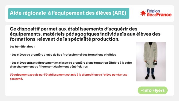 Ce dispositif permet aux établissements d’acquérir des équipements, matériels pédagogiques individuels aux élèves des formations relevant de la spécialité production.