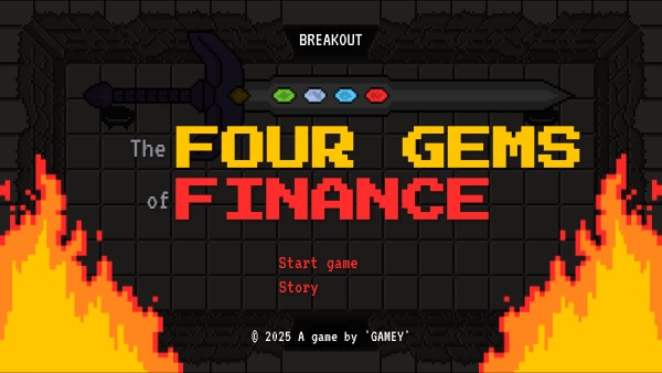 Thank goodness you’re here, Guardian! The Dragon of Greed has stolen the Four Gems of Finance, plunging Prosperia into chaos. Only by recovering the Gems can you restore balance and power your sword to defeat the dragon.