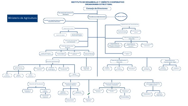 NO ASIGNADO SECRETARIA DEL CONSEJO DE DIRECTORES PRINCIPALES FUNCIONES Establecida por la Ley 31-63 en su art. 38, es una unidad subordinada al Consejo de Directores y la Presidencia administrativa. Sus objetivos incluyen la custodia de los libros de actas y sellos del Idecoop, la emisión de certificaciones con el visto bueno del presidente administrador y el brindar soporte legal en el funcionamiento del Instituto, resoluciones y actos administrativos.