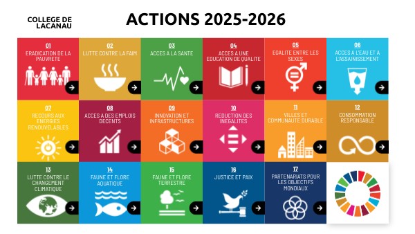 - Cleanwalk : nettoyage des plages - Local à vélo et rack à skateboard pour favoriser les déplacements en mobilité douce - Limitation de l'utilisation à la cantine des emballages individuels ? - retour aux substituts de carnets réutilisables - Sortie 6e "citoyen du littoral" : sortie à Lacanau Océan, création de scultpures sur sable et sensibilisation à la faune et flore aquatique - labellisation E3D niveau 2 ? - référent DD