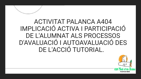 ACTIVITAT PALANCA A404 implicació activa i participació de l'alumnat als processos d'avaluació i auTOavaluació des de l'acció tutorial.