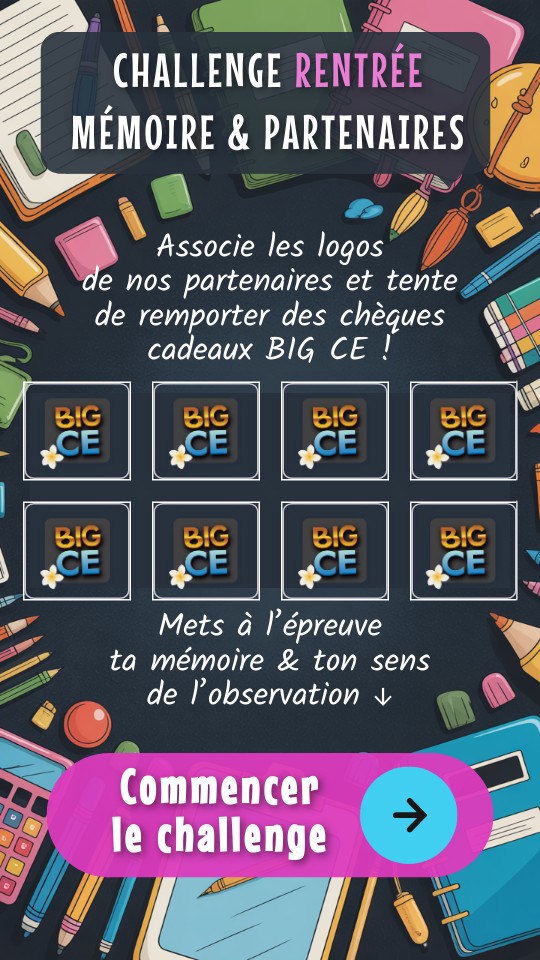 RÈGLEMENT DU JEU "CHALLENGE MÉMOIRE BIG CE" Le présent jeu est organisé par BIG CE Tahiti, domicilié en Polynésie française. La participation au jeu implique l’acceptation pleine et entière du présent règlement. 1. Conditions de participation Jeu ouvert uniquement aux résidents de la Polynésie française, âgés de 18 ans et plus. Une seule participation par personne (nom + numéro de téléphone + email valides). La participation est gratuite, sans obligation d’achat. 2. Modalités du jeu Le joueur doit compléter les niveaux du jeu de mémoire et remplir le formulaire final. Les participations sont enregistrées du 24/12/2025 au 23/02/2026 inclus. Toute tentative de fraude ou de multi-participation entraînera l’annulation immédiate. 3. Tirage au sort Le tirage au sort aura lieu le 24/02/2026 ou les jours suivants par un logiciel certifié sous le contrôle de BIG CE. Les gagnants seront contactés par email ou appel téléphonique. Si un gagnant est injoignable sous 7 jours, son lot pourra être réattribué. 4. Lots 1er lot 10 000 Xpf en chèque cadeau BIG CE2eme lot : 6 000 Xpf en chèque cadeau BIG CE3ème lot : 4 000 Xpf en chèque cadeau BIG CE+ 5 chèques cadeaux BIG CE d'une valeur de 2000 Xpf sont mis en jeu sur la page Facebook BIG CE. Les lots ne sont ni échangeables, ni remboursables, ni cessibles. Les gagnants devront récupérer leur lot physiquement dans les bureaux BIG CE (Mamao / Tahiti). 5. Données personnelles Les informations collectées (nom, prénom, téléphone, email) sont utilisées uniquement dans le cadre du jeu et pour contacter les gagnants. Elles ne sont ni revendues, ni réutilisées en dehors des opérations liées à BIG CE, conformément à la réglementation locale. Les participants peuvent demander la modification ou suppression de leurs données via : contact@bigce.pf 6. Responsabilité BIG CE se réserve le droit de modifier ce règlement, suspendre ou annuler le jeu en cas de force majeure, problème technique, fraude... 7. Acceptation La participation au jeu vaut pleine acceptation de ce règlement.