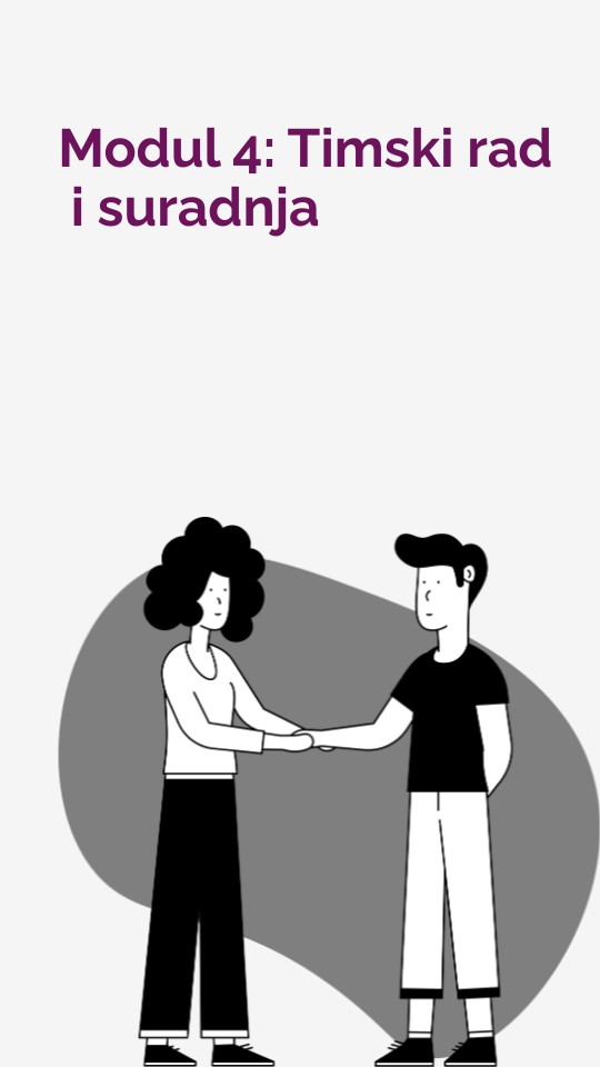 Tvoj je zadatak pomoći timu da krene naprijed, potaknuti suradnju i osigurati da se čuju sva mišljenja.Odaberi strategiju koja održava timski rad i potiče kompromis. Suradnja ne znači birati stranu — nego pronaći zajedničko rješenje. ✅ Pokušaj: “Navedimo prednosti i nedostatke svake ideje i pronađimo ravnotežu.” ❌ Izbjegavaj: “Nemamo vremena za ovu raspravu. Idemo to napraviti po mome.”