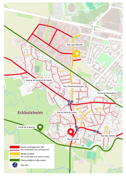 Les itinéraires jaunes correspondent à des axes où certains aménagements sont prévus par marquage au sol, mais où le vélo reste au même niveau que la voiture.