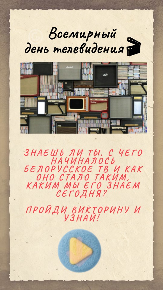 Знаешь ли ты, с чего начиналось белорусское ТВ и как оно стало таким, каким мы его знаем сегодня? Пройди викторину и узнай!