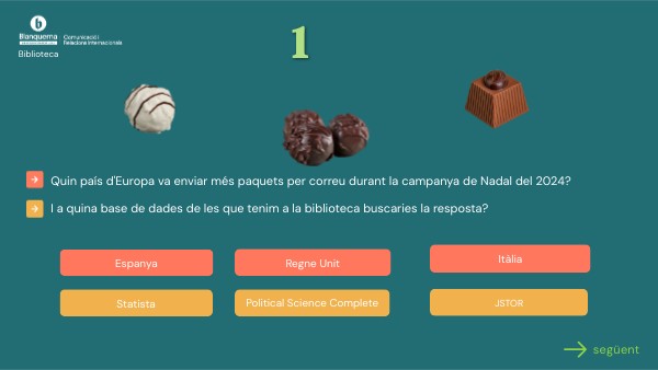 Quin país d'Europa va enviar més paquets per correu durant la campanya de Nadal del 2024? I a quina base de dades de les que tenim a la biblioteca buscaries la resposta?