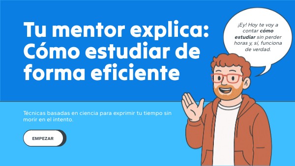 Aprende a estudiar de forma más eficiente con este microlearning guiado por un mentor. Descubre técnicas basadas en ciencia, explora trucos interactivos y mejora tu rendimiento con mini-retos y consejos prácticos para memorizar mejor.