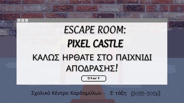 Καθώς ταξίδευες σε άγνωστα μέρη, ο βασιλιάς του Pixel Castle ενοχλήθηκε από την επίσκεψή σου στο κράτος του και σε συνέλαβε. Για να συνεχίσεις το ταξίδι σου, πρέπει να ξεπεράσεις τις δοκιμασίες που θα σου βάλει ο βασιλιάς! Σκοπός: να αποκτήσεις τα Pixel νομίσματα, ώστε να μπορέσεις να απελευθερωθείς και να αποδράσεις! Πώς θα ξεπεράσεις τις δοκιμασίες; Αναγνωρίζοντας τις αληθινές από τις ψεύτικες πληροφορίες του Διαδικτύου! Μπορείς να ξεχωρίσεις τους ασφαλείς από τους επικίνδυνους διαδικτυακούς συνδέσμους; Την αλήθεια από την παραπληροφόρηση; Αν χρειαστείς βοήθεια, μπορείς να χρησιμοποιήσεις το "μπλε κουμπί" που θα εμφανίζεται!