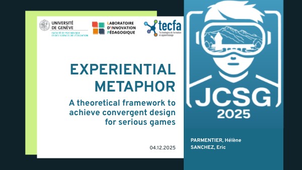 Bruckman, A.: Can Educational Be Fun? In: Game Developers Conference 1999. pp. 75-79, San Jose, CA, USA (1999). Bogost, I.: Video Games Are Better Without Stories, https://www.theatlantic.com/technology/archive/2017/04/video-games-stories/524148, (2017). Parmentier, H., Sanchez, E.: Repenser l’intégration : le jeu comme métaphore expérientielle pour l’apprentissage. In: Actes de la 12ème Conférence sur les Environnements Informatiques pour l’Apprentissage Humain. pp. 558–562. , Lille, France (2025).